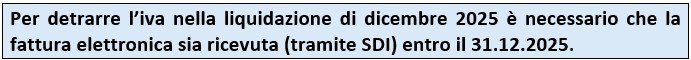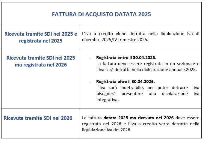 L’iva delle fatture di acquisto datate 2025 ma ricevute nel 2026 potrà essere detratta SOLO nel 2026.