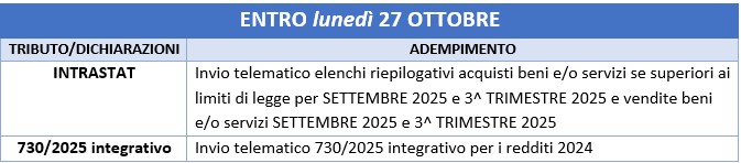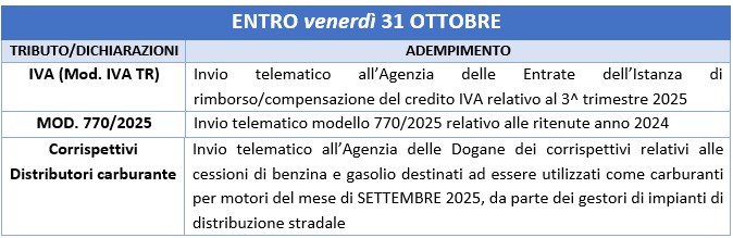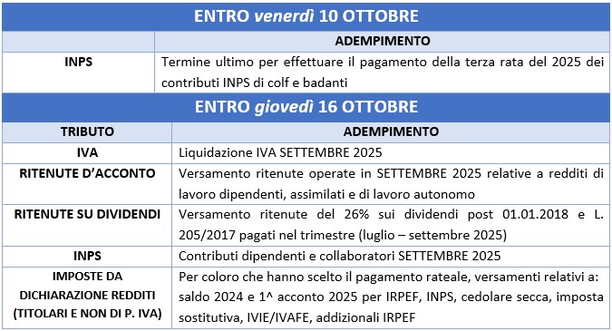 - SCADENZARIO OTTOBRE 2025Ottobre 2, 2025 - 3:21 pm